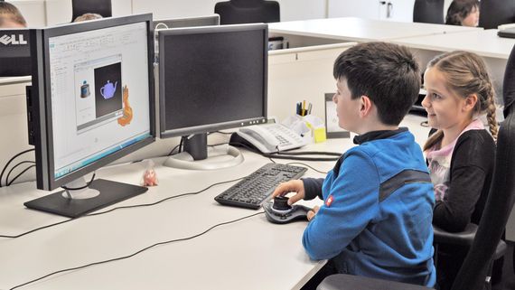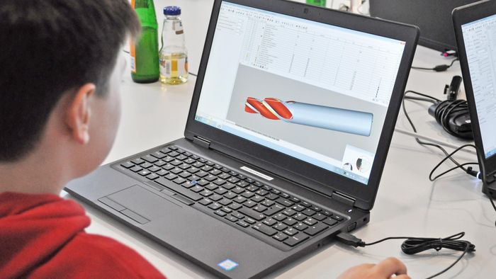 Poté se skupina dětí vydala do oddělení konstrukce. Zde se děti dozvěděly, jaké kroky je nutné udělat, aby stroj mohl být na počítači vytvořen. Aby si školáci zvykli na práci s 3D myší, byli rozděleni do týmů. Prvním úkolem byla vlastně malá soutěž, ve které bylo nutné co nejrychleji sestavit virtuální podvozek letadla. Na závěr mohly děti v konstrukčním programu CAD jednotlivé komponenty poskládat tak, aby vytvořily samotný stroj.