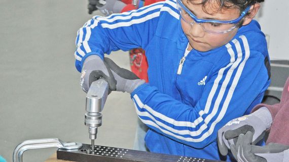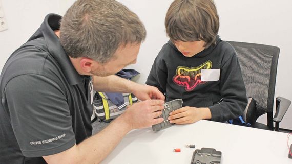 Předtím než se celá skupina mladých "konstruktérů" vydala dál, dostali všichni odpovídající pracovní oblečení a pomůcky: ochranné brýle, rukavice a bezpečnostní pracovní obuv v tzv. miniformátu. Poté se všichni přesunuli do dalších oddělení. Tam se děti naučily, proč jsou přesnost a preciznost ve strojírenství tak moc důležité. U nezávislé konstrukce mini elektromotoru je zaujala především neviditelná síla indukce. K tomu dochází, když proud protéká cívkou.