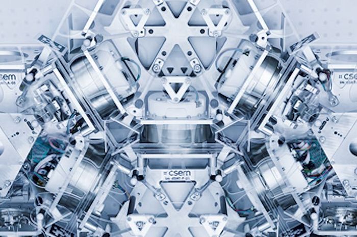 The CSEM is also involved in designing a NASA space telescope. Bottom: a reflecting telescope made up of six elements. Top: a 3D-printed structure that aligns the mirror with high precision