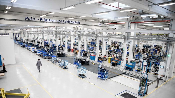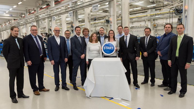Jürgen Schock, CEO of Walter Maschinenbau GmbH, welcomed the group of about forty invited guests followed by a short speech from project manager Markus Schulze about the flow assembly line project, before kicking off the official opening ceremony. Together, the entire project team pressed a start button to symbolize the official launch of the flow assembly line.