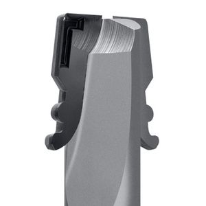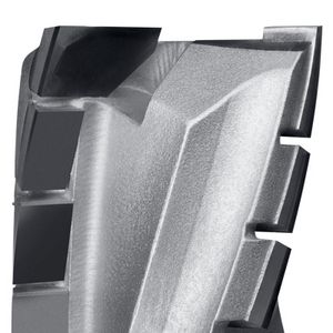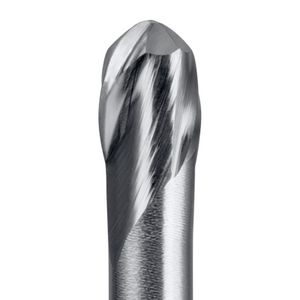 La combinaison spéciale d'une hélice à gauche (downcut) et d'une hélice à droite (upcut) garantit des tranchants nets aux extrémités de la pièce. Les fraises Up & Downcut sont donc particulièrement adaptées au fraisage de profils de panneaux en bois revêtus des deux côtés.
