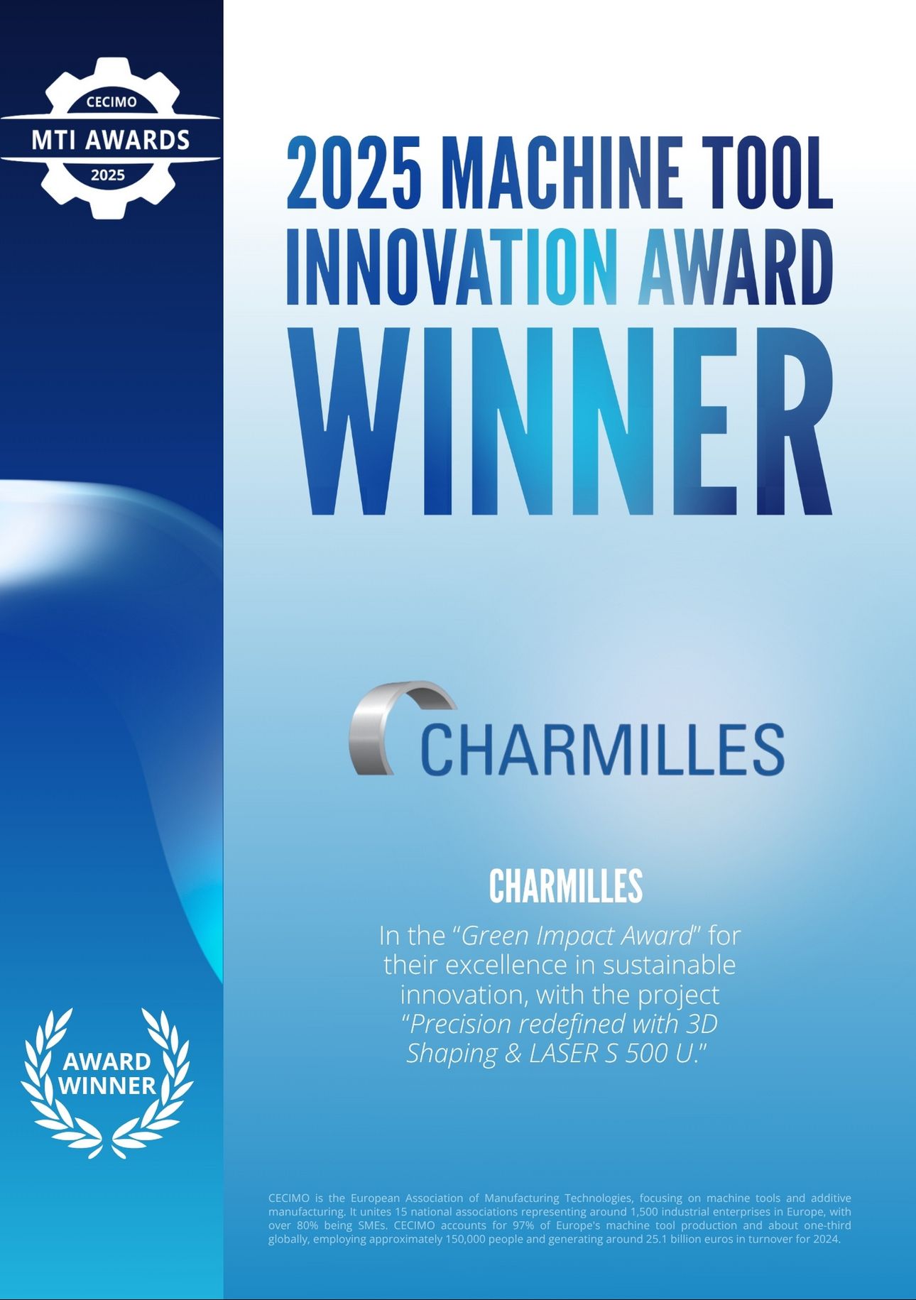 UNITED MACHINING SOLUTIONS se félicite d’un succès phénoménal lors des Machine Tool Innovation (MTI) Awards 2025, organisés par l’Association européenne de l’industrie des machines-outils (CECIMO). Le groupe a impressionné le jury à deux reprises : UNITED GRINDING a remporté le prix principal, Best Overall Solution, pour son concept révolutionnaire de “Digital Manufacturing Ecosystem”, tandis que CHARMILLES a reçu le Green Impact Award pour son projet durable et innovant “Precision Redefined with 3D Shaping & LASER S 500 U.” Les deux distinctions ont été remises pendant EMO Hannover 2025, le plus grand salon mondial des machines-outils et des technologies de fabrication – marquant un double triomphe pour le groupe nouvellement formé et soulignant sa force d’innovation.