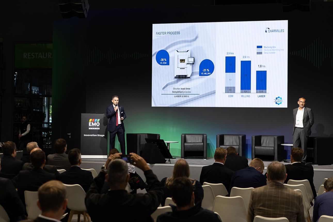 Autre motif de célébration : CHARMILLES, une marque de la division UNITED MACHINING, a été récompensée pour son approche novatrice de la fabrication durable de haute précision par le Green Impact Award. L’équipe dirigée par Philippe Langel, Directeur de CHARMILLES, et Adrien Rodrigues, Business Support Manager, a reçu le prix avec un grand honneur et une immense fierté. Le projet primé, “Precision Redefined with 3DShaping & LASER S 500 U,” associe un procédé d’usinage unique, 3DShaping, à une plateforme de micro-usinage ultra-précise et hautement dynamique, la LASER S 500 U. Ensemble, ils permettent la fabrication de micro-géométries complexes d’une précision et d’une qualité inégalées – même pour des structures exigeant des arêtes vives et des parois parfaitement verticales. Cette approche réduit considérablement la consommation d’énergie, élimine les consommables et simplifie le flux de travail global. Elle établit de nouvelles références en matière de fabrication durable en diminuant l’empreinte environnementale, le coût unitaire et les délais de production. « La durabilité n’est pas une tendance, c’est une responsabilité », a souligné Philippe Langel lors de la remise des prix. « Nos développements démontrent que la précision et l’écologie peuvent aller de pair – et que la haute technologie peut véritablement contribuer à une industrie plus efficiente en ressources. »